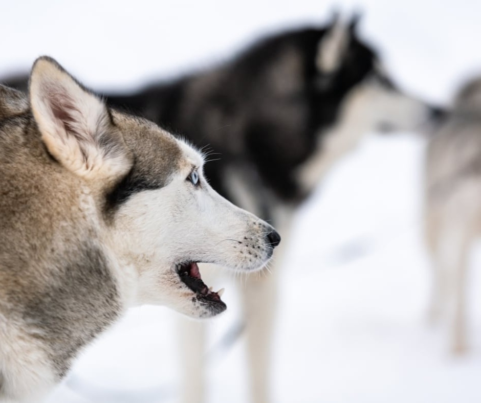As your husky team begins pulling their sled, they go quiet and focus on pulling you quickly across the magical, snowy landscape.