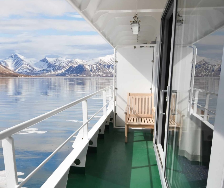 Your vessel is the quiet, eco-friendly MS Bard. This hybrid motor catamaran allows close-up encounters with Arctic wildlife without disturbing them.